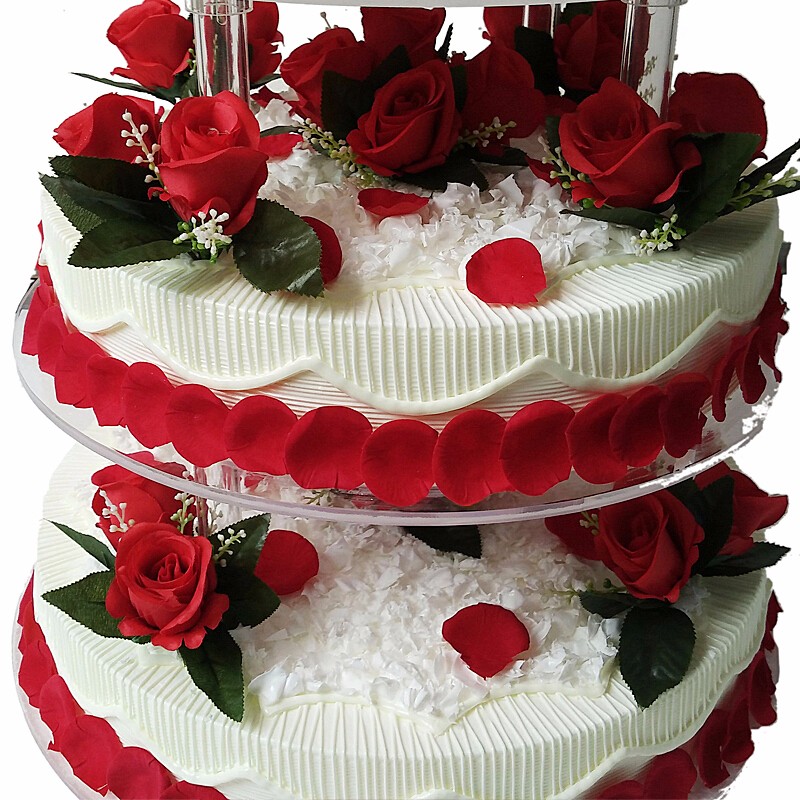 蛋糕材料: 多层鲜奶玫瑰婚礼蛋糕。
