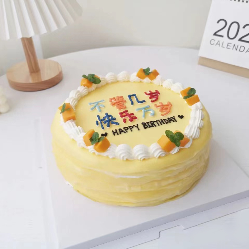 蛋糕材料: 榴莲千层蛋糕,圆形蛋糕,新鲜优质奶油水果,字可更改,留言或咨询客服。