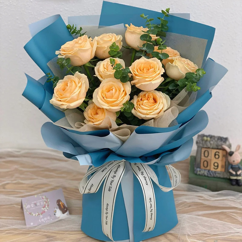 【有你的日子】19支香槟玫瑰,搭配适量细叶尤加利叶装饰。