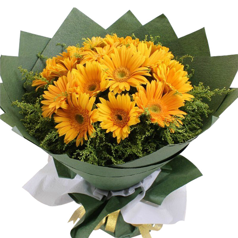 花 材:精选19朵顶级黄色弗朗,外围搭配黄莺。