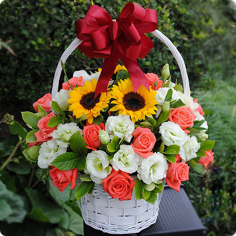 包装: 白色精美手提花篮(篮子和配饰等具体以当地实物为准)