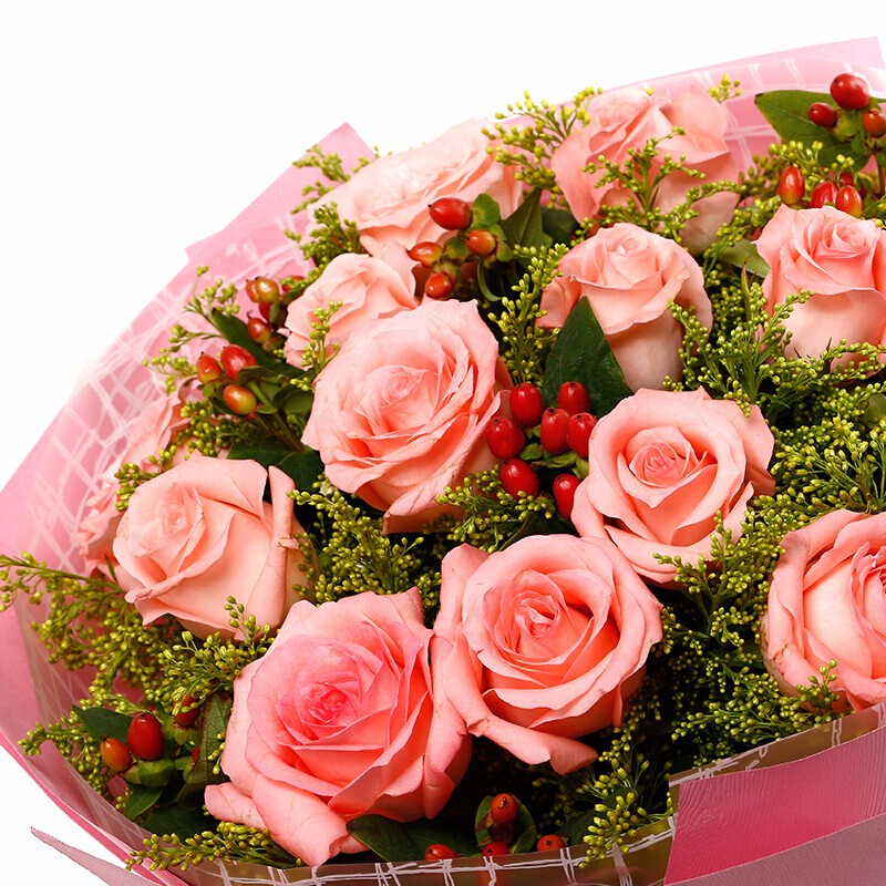 包 装:11支精品粉玫瑰,搭配红豆点缀。