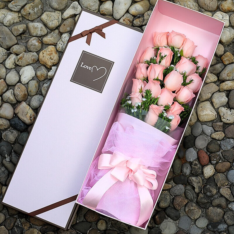 包 装:白色雾面纸内衬、粉色包装,蝴蝶结束扎。精美长方形礼盒。
