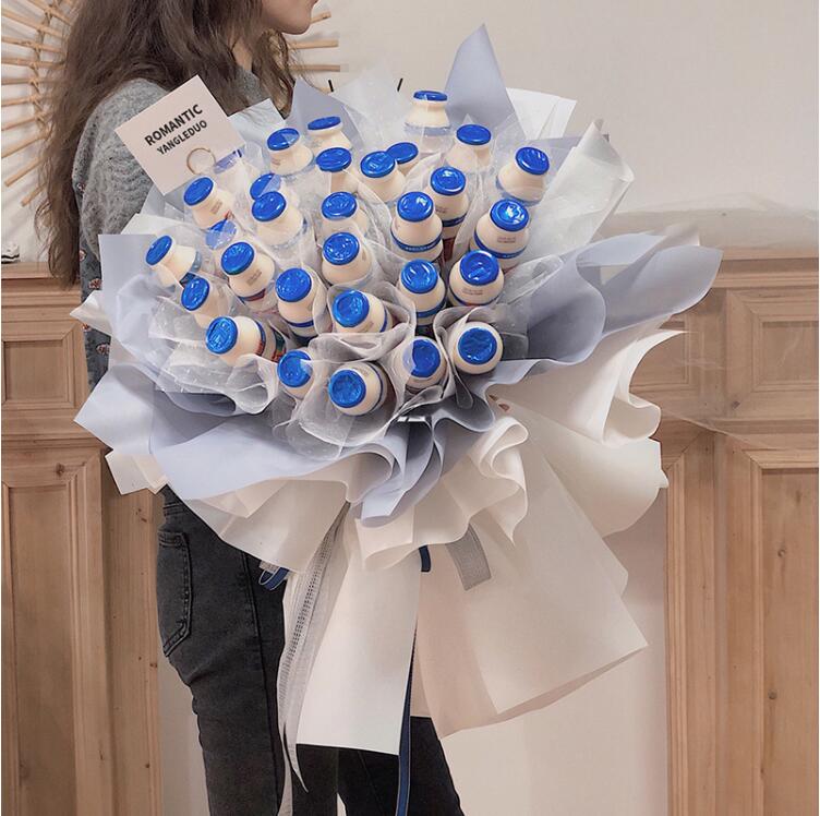 包 装:白色带波点雪梨纸+灰色雾面纸+白色雾面纸包装,蓝色丝带+银色丝带束扎。