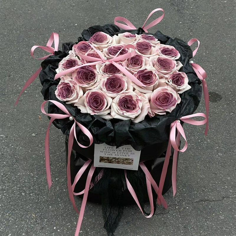花 材:19朵曼塔玫瑰喷色乌梅子酱(珍贵稀少花材,请提前预订或咨询花艺师)