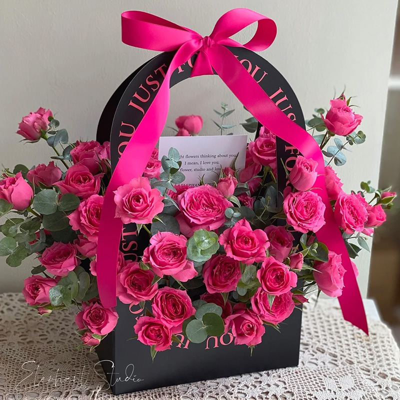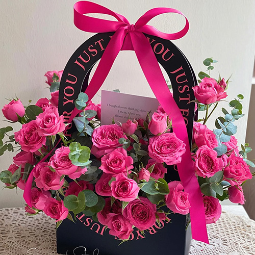 包装: 精美纸质手提花篮(花篮和配饰等具体以当地实物为准),珍贵稀少花材请提前预订或咨询客服。