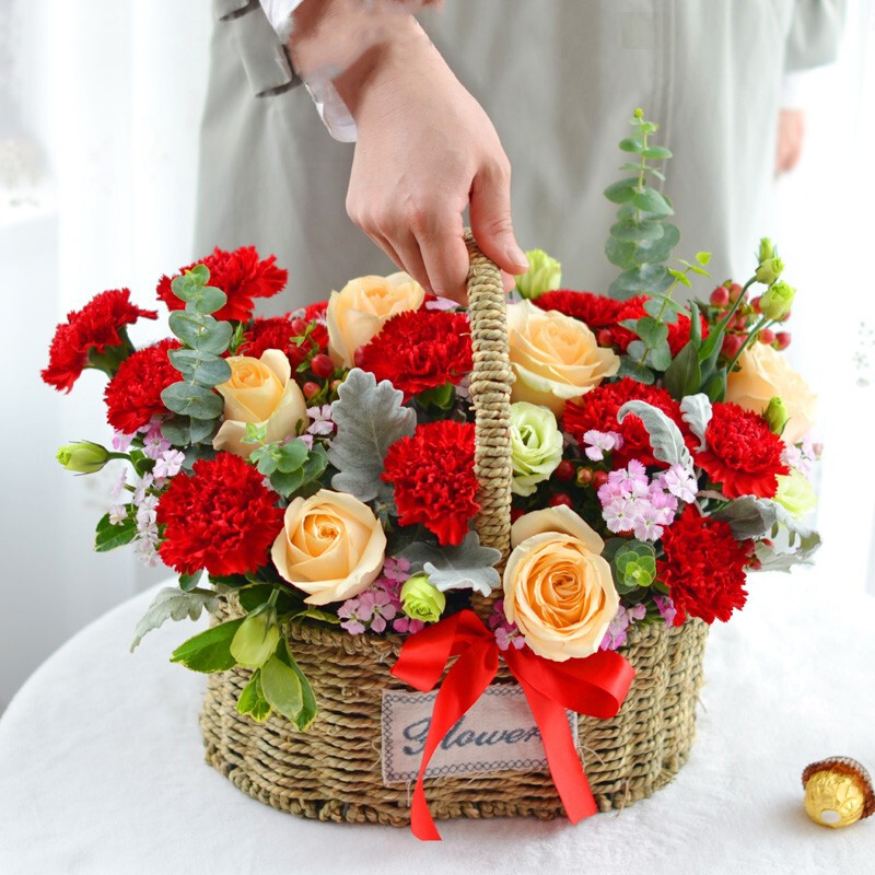 • 商品包装精美手提花篮(花篮和配饰等具体以当地实物为准)