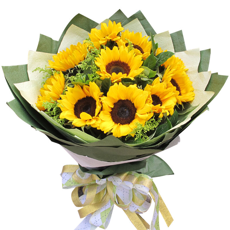 - 花材10枝向日葵,搭配黄莺、绿叶。