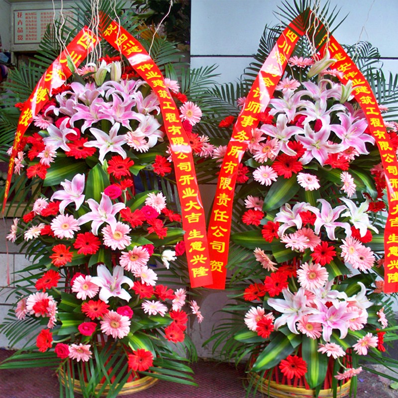 花篮收到以后马上去看的,发现超级喜欢,服务也很到位,点个赞,下次还会来购买!鲜花很新鲜也很大。买了五对,看起来很大气