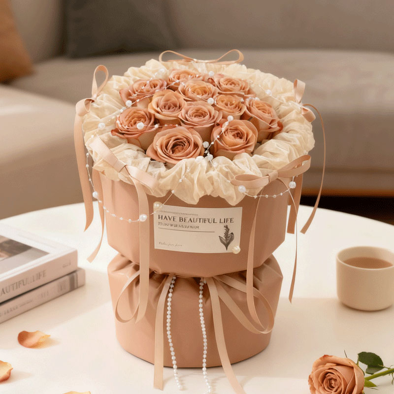 包 装:注:卡布奇诺为天然复古色,随季节和温度变化,颜色也会有差异,介意勿拍哦。【珍贵稀少花材,请提前预定。】