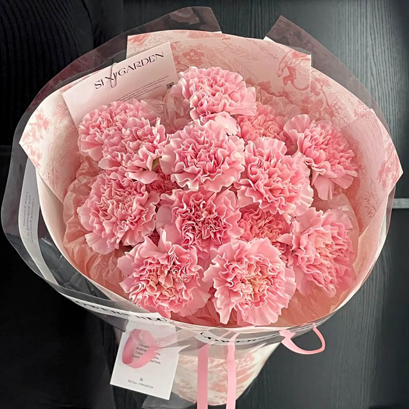花材: 精选19枝粉色康乃馨。