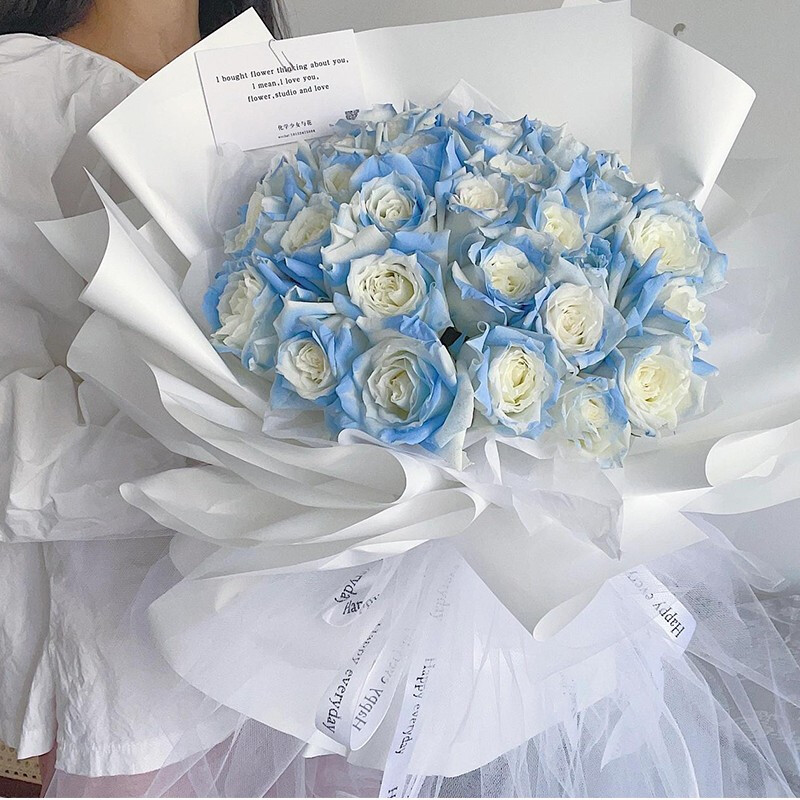 花 材:33枝碎冰蓝玫瑰(珍贵稀少花材,请提前预订或咨询花艺师)