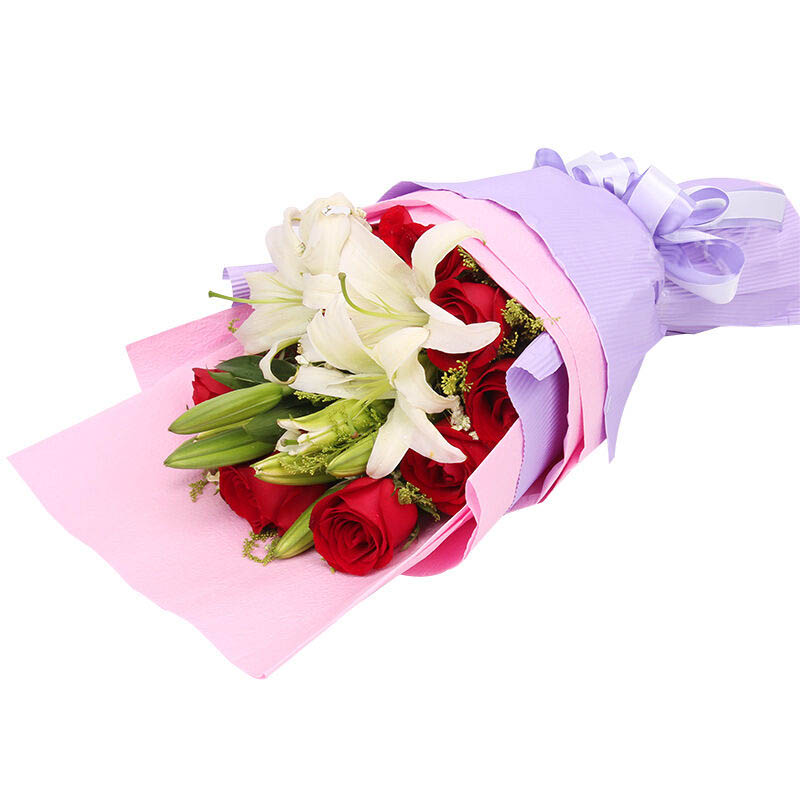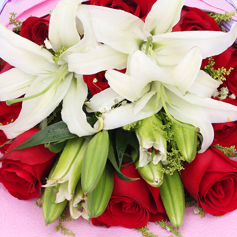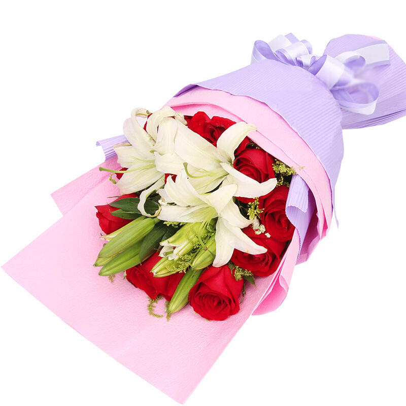 - 唯你最爱 - 11朵红玫瑰,3支多头白色香水百合,黄莺点缀。